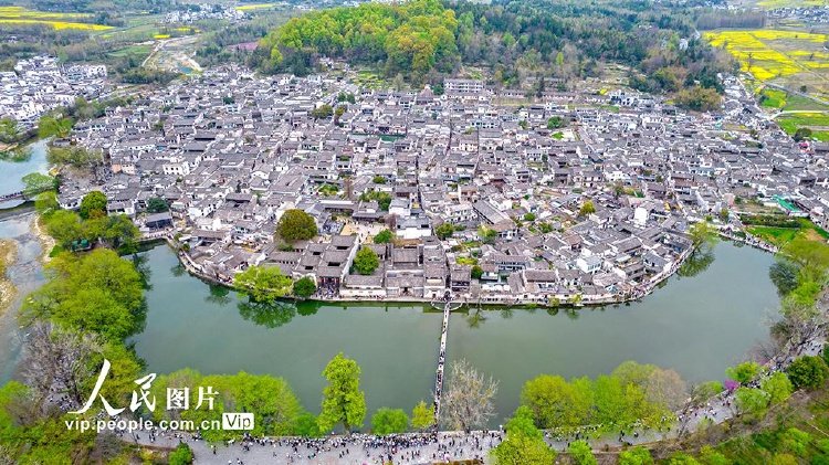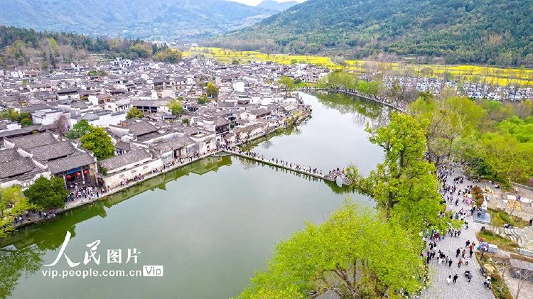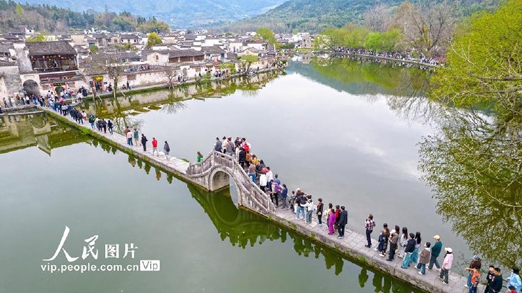 本文转自【人民网-图片频道】;2025年4月4日,在安徽省黄山市黟县的宏村景区内,游客数量众多,呈现出热闹景象。马二虎摄(人民图片网)