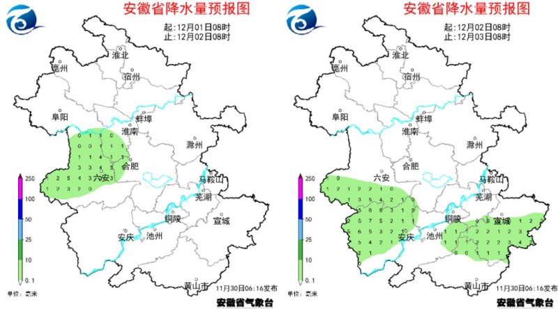 气温:30日夜里起至12月3日受冷空气影响,全省平均气温将下降8~10℃,局部11℃以上,同时全省偏北风力3~4级,阵风7级左右。冷空气过后3-5日早晨最低气温:淮北地区和本省山区-5~-3℃,其他地区-2~2℃。