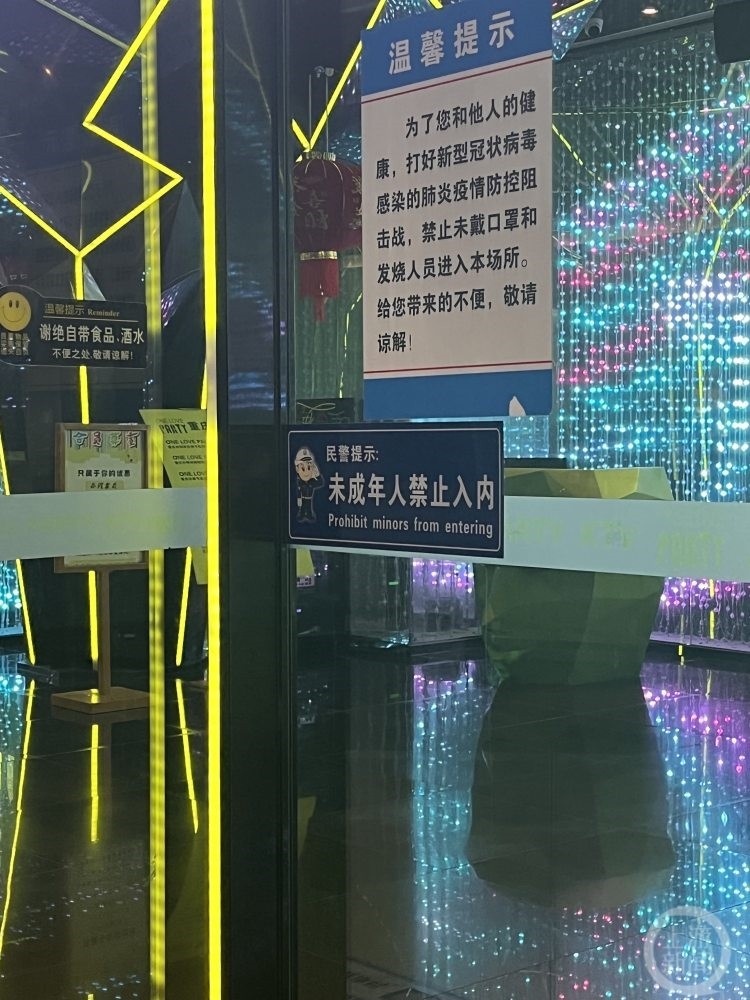 ▲重庆某KTV门口贴有“未成年人禁止入内”提示