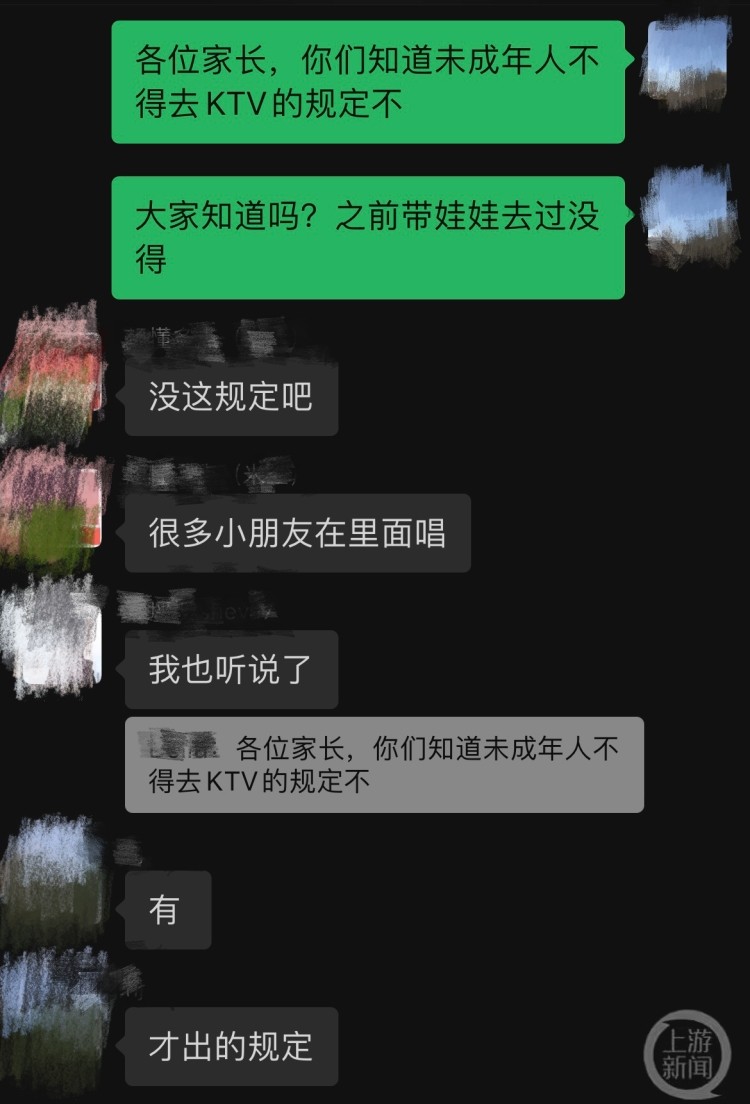 家住渝北区的张女士儿子正在上幼儿园,在上游新闻记者提及此事时,她称自己并不知情,“我之前就带孩子去过几次,孩子挺喜欢去唱歌的,他还会唱好几首歌,比如大火的《孤勇者》,KTV里也有一些儿童歌曲。都是家里人一起去娱乐,我觉得挺好的,孩子也很高兴。”