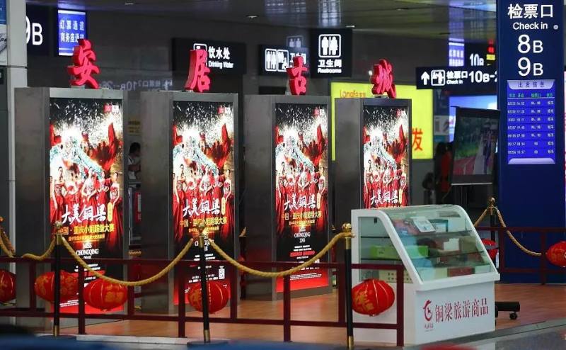 ▲重姐超级大赛品牌推广强势入驻重庆T3航站楼户外大牌,这里一年旅客吞吐量超4000万,重庆美女与文旅产业深度融合,让来自世界各地的旅客来到重庆,第一时间看到中国龙乡“铜梁”的别样风采。