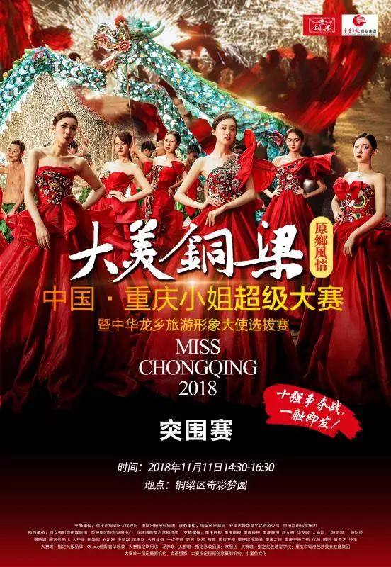 “原乡风情·大美铜梁”2018中国·重庆小姐超级大赛暨中华龙乡旅游形象大使选拔赛由重庆市铜梁区人民政府、重庆日报报业集团主办,铜梁区旅游局、安居古城华夏文化旅游公司、重报都市传媒集团承办,新女报时尚传媒集团和重报集团旅游发展中心等执行。
