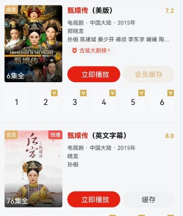 乐视视频上还有美版及英文字幕版《甄嬛传》 图片来源:APP截图