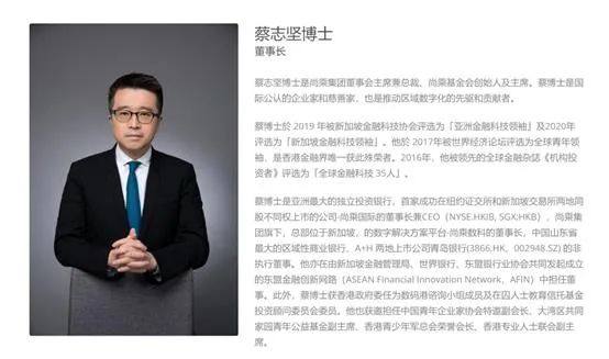根据尚乘数科的招股说明书,公司大股东为尚乘国际,持股比例为88.7%。而尚乘国际的控股股东为尚乘集团(AMTD GROUP),持股比例为61.94%,持股比例达到9.28%的蔡志坚则为第二大股东。蔡志坚同时担任尚乘集团的董事会主席。
