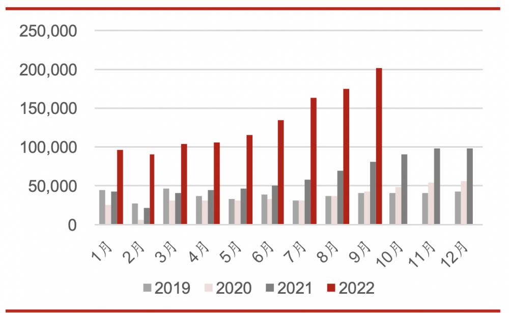 此前,比亚迪对2022年给出了150万辆的销量目标,今年前三季度,比亚迪已完成全年目标的78%,以此计算,在第四季度,比亚迪只需每月销售11万辆即达成全年目标。机构普遍认为,按照其目前的增速,比亚迪有望在今年冲击200万辆,即第四季度平均每月销量需达到近28万辆。