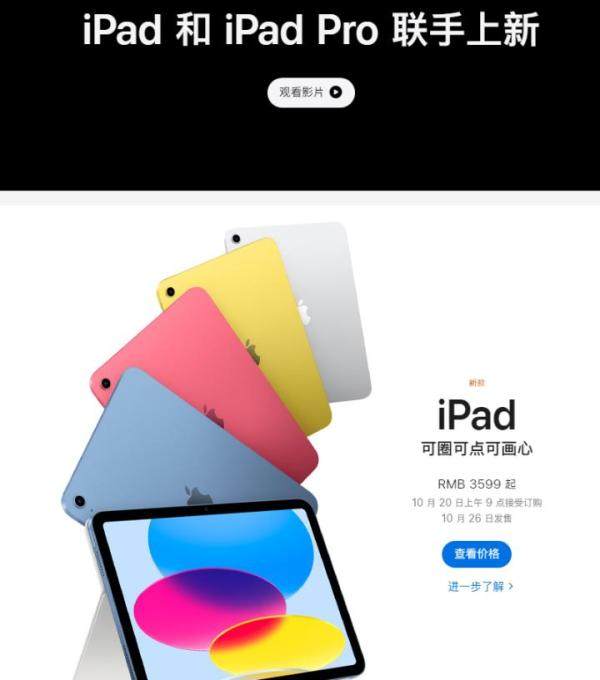 果然,晚上10点多,苹果直接在官网首页宣布,新款iPad10月20日上午9点接受订购,10月26日发售。