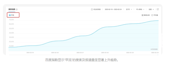 据人民日报健康客户端记者查询百度指数发现,近七日以来,“甲流”的搜索及报道量呈显著上升趋势,仅2月24日,就有69417的搜索量。