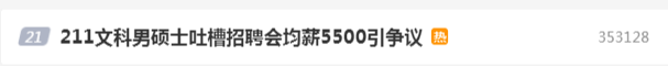 今(1)日,#211文科男硕士吐槽招聘会均薪5500引争议#上榜热搜,到底是眼高手低还是情有可原?网友为此吵翻了!