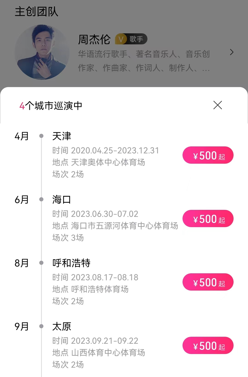 2月27日、28日,周杰伦2023嘉年华世界巡回演唱会太原站、呼和浩特站、海口站门票预售开启。三个城市、上千个座位的门票在数十秒内被一扫而空,相关话题频上热搜。有网友称,“抢票几点开始,几点结束。”