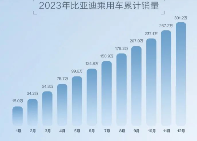 比亚迪在2023一整年中几乎一骑绝尘,成绩甩了对手“几条街”。