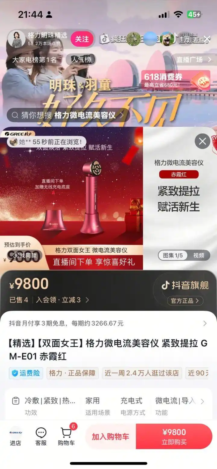 尽管有董明珠的亲自站台与极力推荐,加上女企业家们长达10余分钟的体验分享,以及“前十名购买者赠送价值5000元酒具”的促销活动,但这款日常价14000元、折后9800元的美容仪并未能打动直播间的多数观众。不少网友认为此举“很尴尬”。