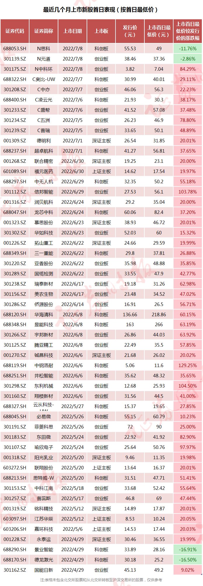值得注意的是,今天沪深股市再现中签后首日即浮亏的新股,这也是时隔两个多月后,沪深股市再次出现首日盘中即浮亏的新股。