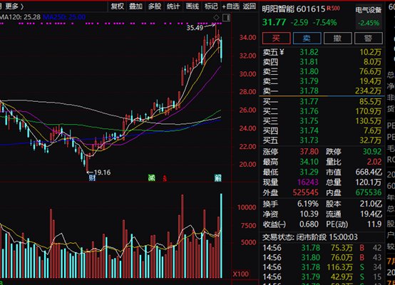比如明阳智能今天股价大幅下跌,盘中一度大跌近9%,而此前交易日公司股价一直坚挺。