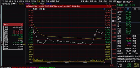 行情数据显示,思科瑞(688053.SH)上市首日盘中一度跌至49元,这一价格较发行价还要低11.76%,若按照此价格计算,中一签思科瑞新股浮亏3265元。