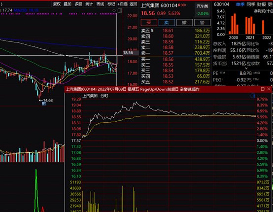 大市值公司方面,市值超2000亿元的汽车巨头上汽集团盘中一度大涨逾9%。此前一天,上汽集团发布了2022年6月份产销快报。