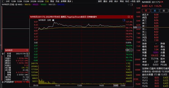 另一只新股中科环保(301175.SZ)首日表现则较好,上市首日盘中一度攀高至9.07元,若按照此价格计算,中一签中科环保新股浮盈2625元。