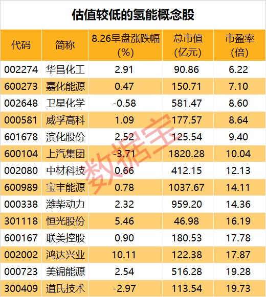受此消息影响,早盘A股中氢能源概念股集体大涨,金宏气体涨15.12%,亿华通涨11.23%,鸿达兴业、凯恩股份、雄韬股份涨停。