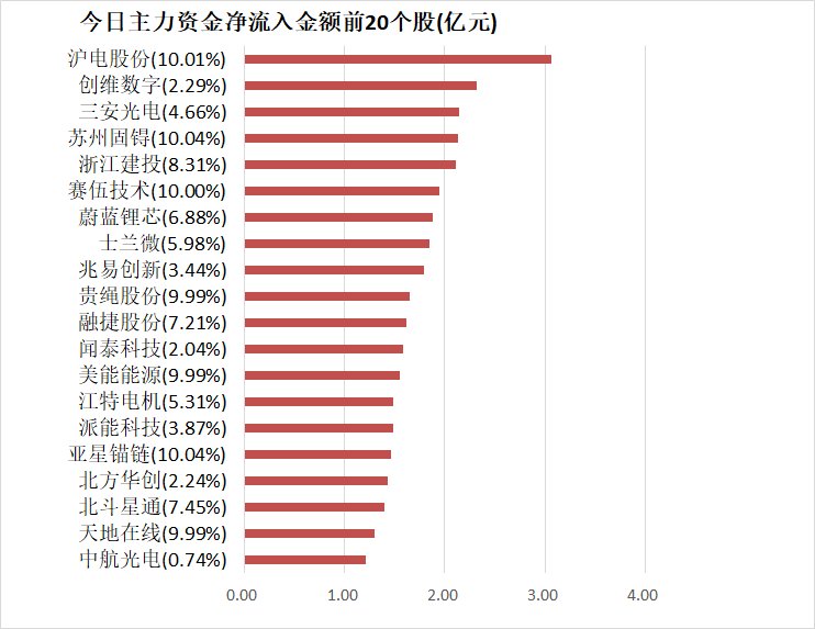 今日沪深两市主力资金开盘净流出101.41亿元,尾盘净流入1.88亿元,两市全天资金净流出199.58亿元。