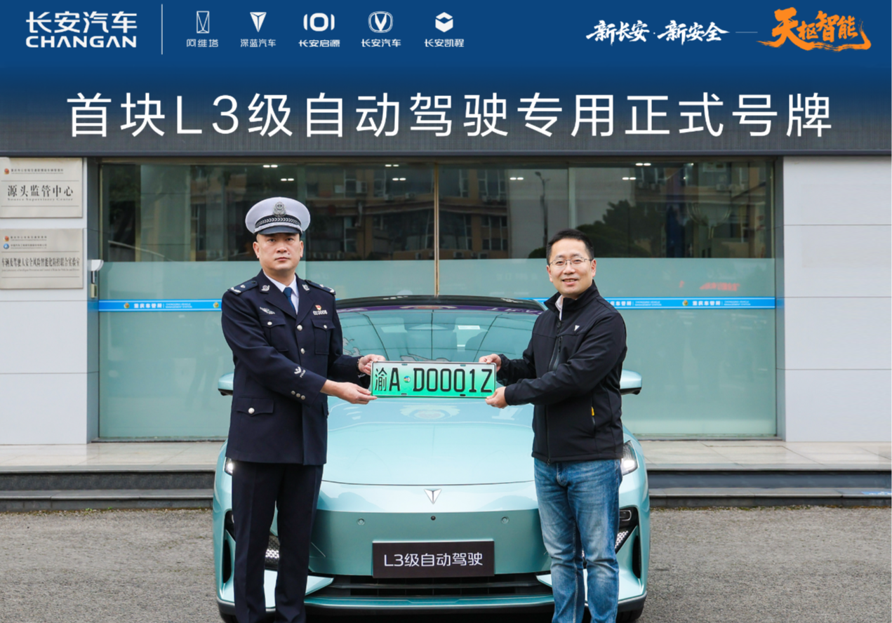 “渝AD0001Z”,首块L3级自动驾驶专用正式号牌在长安汽车启用