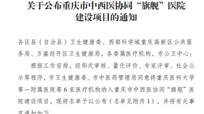 又添喜讯!重医附二院获批重庆市中西医协同“旗舰”医院建设项目
