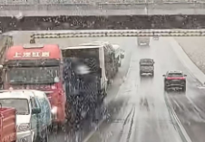 安徽大货司机在河北遇大雪封高速路 两位卡友大哥一前一后为他带路