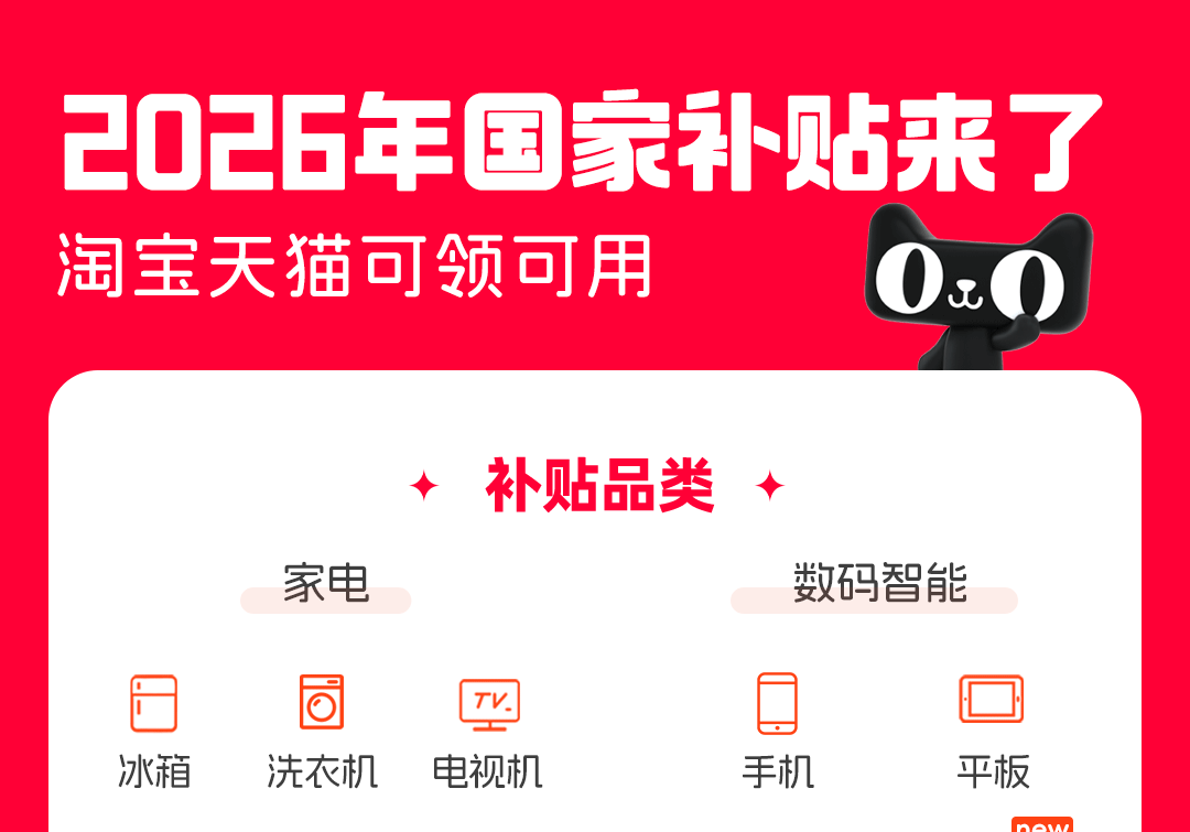 2026年国补来了!1月1日起上淘宝天猫领取,家电数码补贴15%