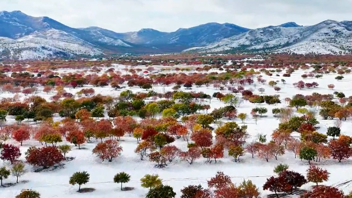 瞰中国·冰雪冬韵|内蒙古:雪伴彩枫