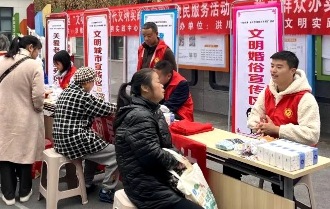 近日,洪雅县“文明洪雅·新时代文明实践进家园”活动走进该县洪川镇临江社区,活动以“3+5+N”文明实践服务模式为抓手,将便民服务送到居民“家门口”,让文明新风浸润群众心田。