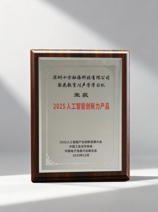 在这场汇聚行业精英、展示前沿成果的盛会上,十方融海梨花教育推出的梨花AI声学学习机脱颖而出,凭借卓越的技术创新与系统化的适老化设计,荣膺“2025人工智能创新力产品”称号。