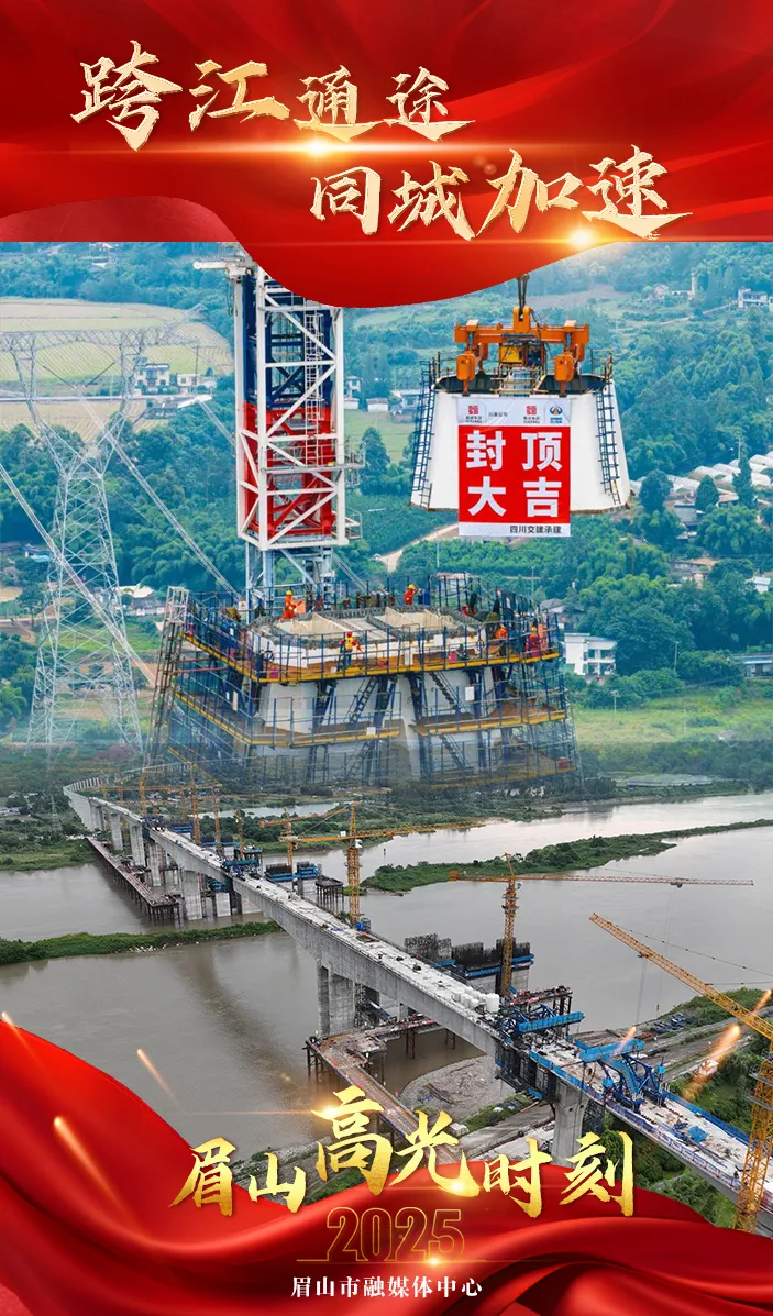 8月28日,市域(郊)铁路成都至眉山线工程关键控制性工程跨岷江特大桥顺利实现全桥合龙。10月6日,天眉乐高速青神虎渡溪岷江特大桥双塔圆满封顶。钢筋铁骨架起发展通途,一个内畅外联、高效便捷的“同城化”交通网络正加速成型,让眉山与世界的距离越来越近。