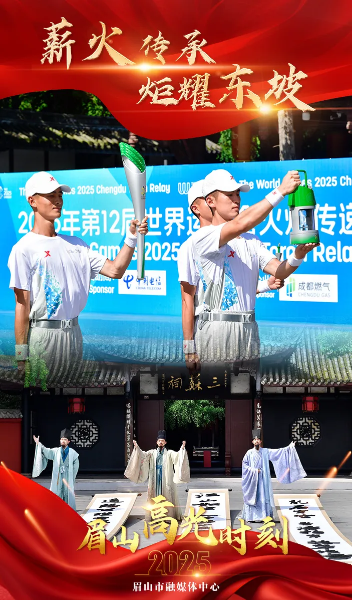 7月26日,2025年第12届世界运动会火炬传递第五站走进眉山三苏祠三苏纪念馆广场,以“寻迹三苏”为主题,以宋代文脉为纽带,火炬手们接力传递的不仅是体育精神的火种,更承载着中华文化中“家国情怀”与“文道并重”的精神力量,让笔墨书香与体育激情在千年眉州交相辉映。