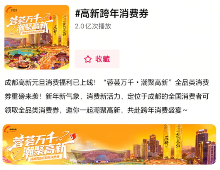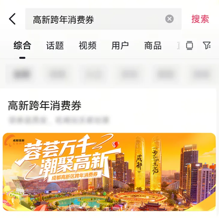 打开首页,点击上方搜索框搜索#高新跨年消费券点击下方话题,进入话题页面;点击话题页活动入口进入领券主会场后,选择相应金额消费券抢领。