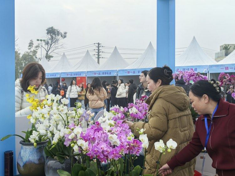 活动现场划分为主题集市、欢乐游园、花卉打卡三大区域,打造沉浸式乡村微度假场景。“主题集市区”汇聚50余家企业,设“一镇一品”“知名企业”“创意集市”三大板块,集中展示郫都特色产品与工业精品,并推出萝卜干制作、川菜教学、品酒包饺等10个互动体验。非遗文创展亦同步呈现,蜀绣、银花丝等技艺为活动增添文化韵味。
