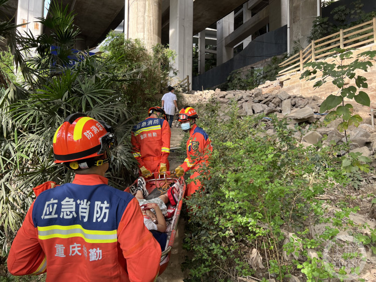 7月27日17时,重庆市渝中区上清寺滨江路天江苑旁的江边,一名小女孩和朋友在桥边玩耍时,不慎摔下5米高的桥墩,坠落在江边乱石堆上,受伤严重。重庆消防特勤支队人民路站接警后紧急赶赴现场救援。