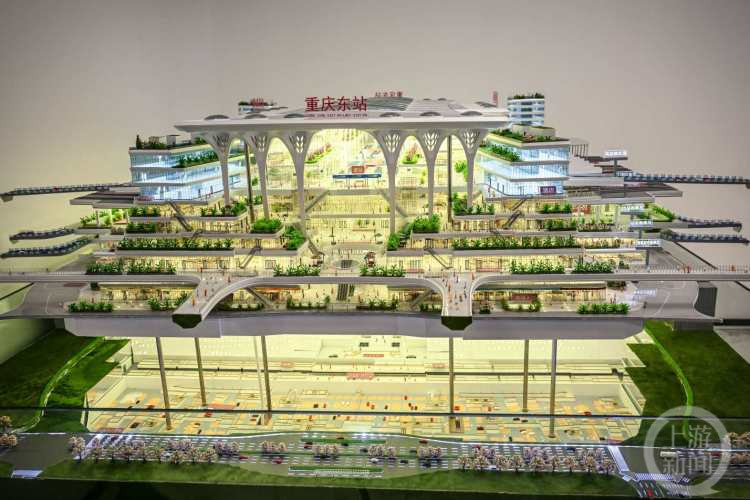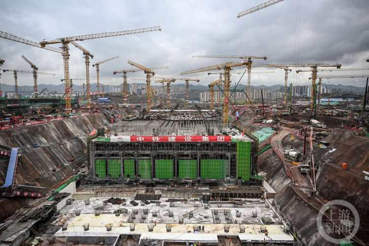 重庆东站位于主城区东部槽谷江南片区,站房枢纽等主体工程总建筑面积为122万平方米,总投资约167亿元,一共有八层建筑。目前已经施工到第三层,也就是轨道交通站厅换乘层,预计年底完成第五层,也就是出站换乘层的施工。
