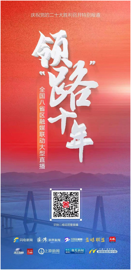 为庆祝党的二十大胜利召开,重庆上游新闻携手山东闪电新闻、上海澎湃新闻、浙江中国蓝新闻、湖北长江云、贵州天眼新闻、黑龙江极光新闻及宁夏广播电视台,全国八省份主流媒体,共同推出大型接力直播《领“路”·十年》,通过全方位、大视角的融媒体直播,展现全国各地落实习近平总书记重要讲话精神,在路桥建设方面取得的十年成就,展现人民群众不断增强的获得感、幸福感、安全感。