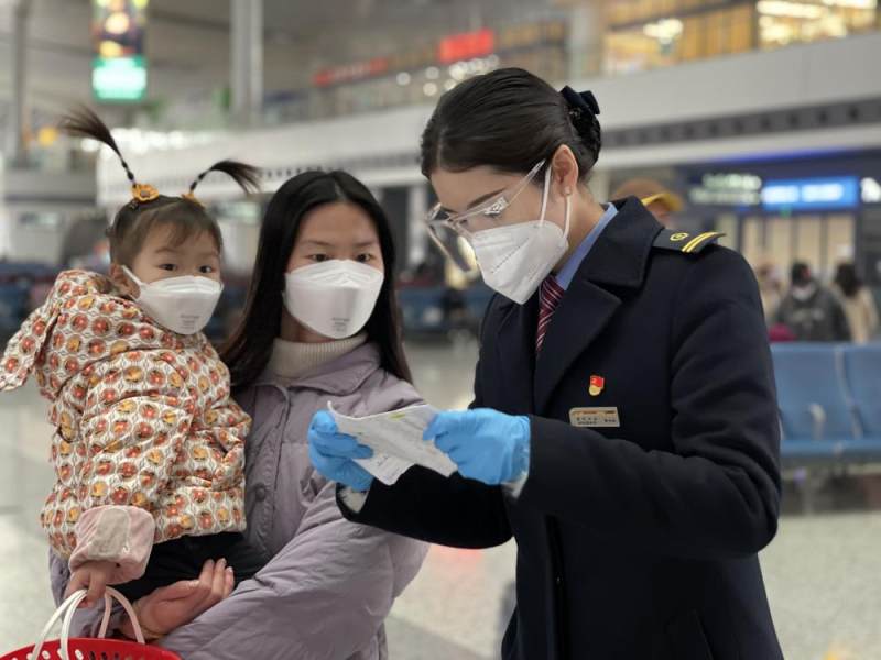 ▲1月20日,重庆北站,工作人员为旅客提供服务。通讯员 徐晨茜 摄