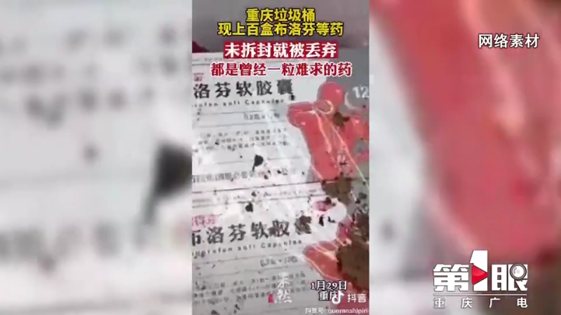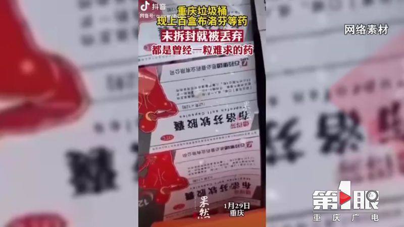 第1眼-重庆广电消息,近日,有网友发现大量未拆封的布洛芬连同其他药物被丢弃在楼下垃圾桶内,“上百盒布洛芬被扔垃圾桶”、“网友囤1000片退烧药全砸手里了”等话题登上热搜,引起广泛讨论。