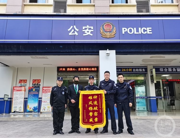 4月7日上午,陈先生将一面印有“神速破窃案 雄风扬警威”的锦旗送到了水土派出所,感谢民警为其找回被盗蜂箱,为企业挽回了损失。