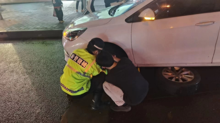 “警察同志你好,我轮胎爆了,实在走不了了,麻烦帮帮忙!”几乎同时,正在陕西路过街楼执勤的交巡警大坪大队民警张晋和骁骑高嘉华时也接到一名年轻驾驶员的求助。