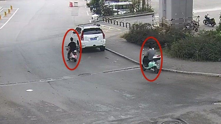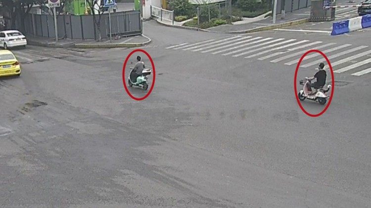 得知情况后,民警刘方杰根据停车位置以及当日周边人流等因素进行分析研判,并联系相关单位调取附近的监控,很快一名可疑男子进入了民警的视线。根据视频监控,刘方杰发现这名在刘女士停车附近多次徘徊且行为怪异的骑车男子,再次出现在监控中时,男子车辆后排多出了一名中年男性。随后,中年男子将刘女士的电动车骑走。