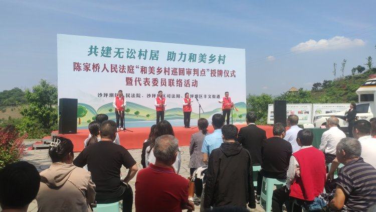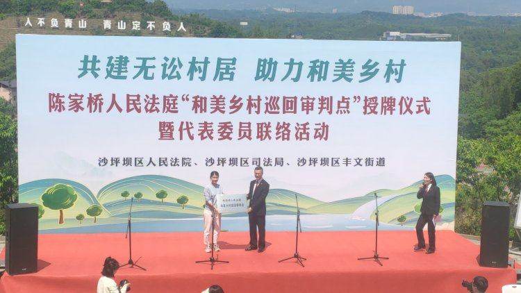 为共建无讼村居,助力和美乡村建设,4月26日,重庆沙坪坝区人民法院联合该区司法局在沙坪坝丰文街道三河村开展陈家桥法庭“和美乡村巡回审判点”授牌仪式。活动中,一桩该院审理的真实婚约财产纠纷案,在现场进行了庭审全程再现。