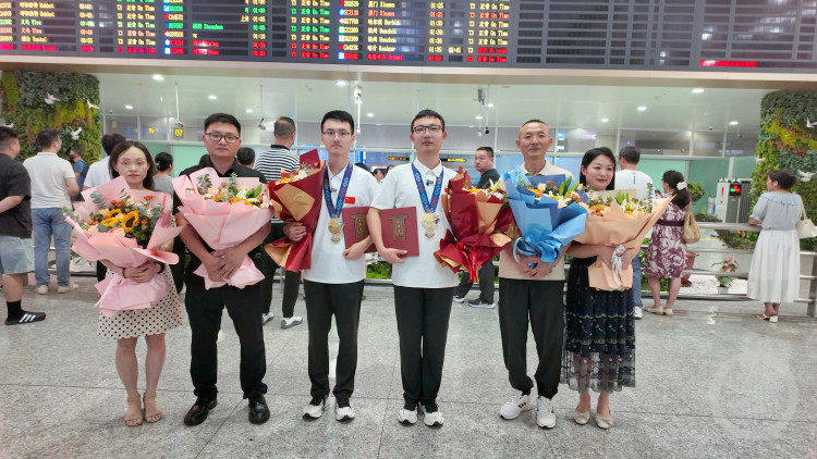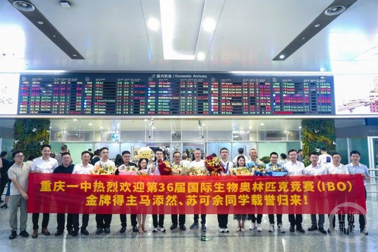 7月27日,在第36届国际生物奥林匹克竞赛(IBO)中,以世界第一名、第二名的优异成绩双双夺得金牌的重庆一中高2025届学生马添然和苏可余,载誉归来,在重庆江北国际机场受到了家长和老师们的热烈欢迎。