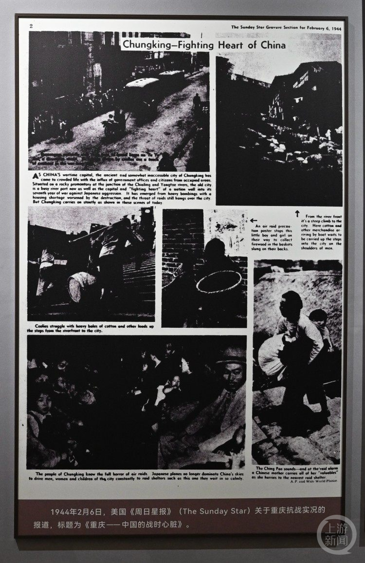 而在1944年2月6日出版的美国《周日星报》上,也对重庆抗战实况作了大篇幅的报道,标题为《重庆——中国的战时心脏》。