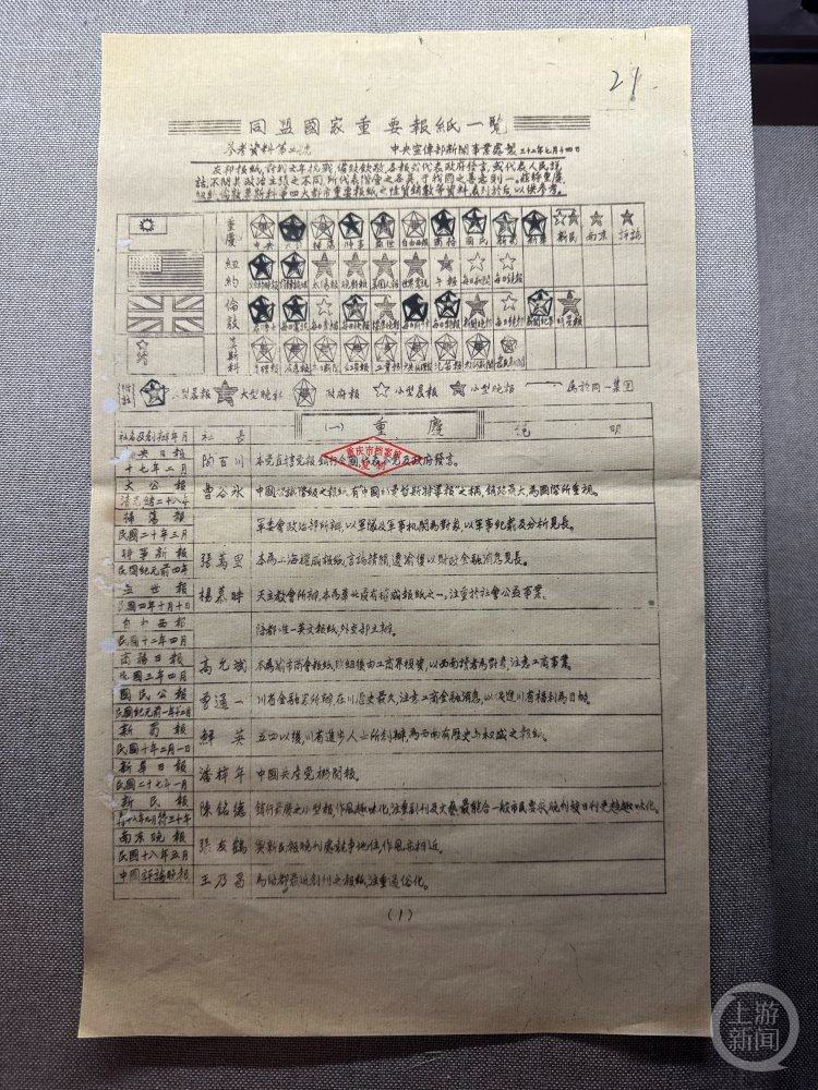 1943年统计的同盟国家重要报纸一览表(中国)。