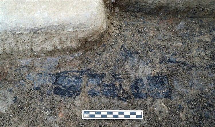 遗址北部垫土面存留炭化竹片。 重庆市文物考古研究院供图