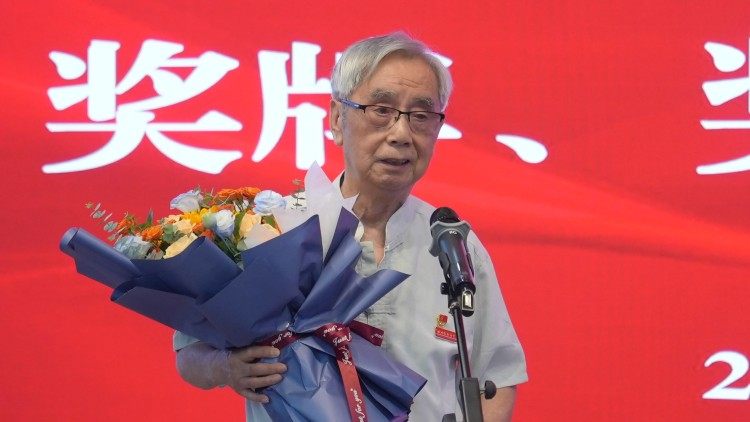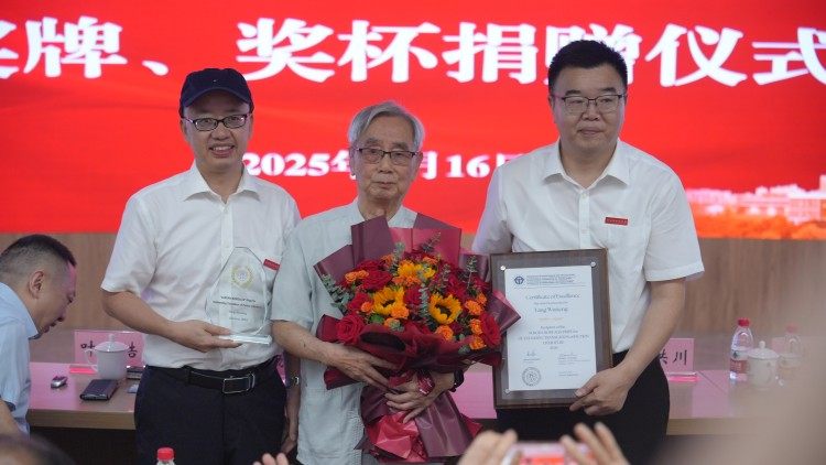 9月16日,四川外国语大学歌乐书院内,著名德语翻译家杨武能,将自己日前获得的国际译联“北极光”杰出文学翻译奖奖牌、奖杯,现场赠予曾任教多年的四川外国语大学。