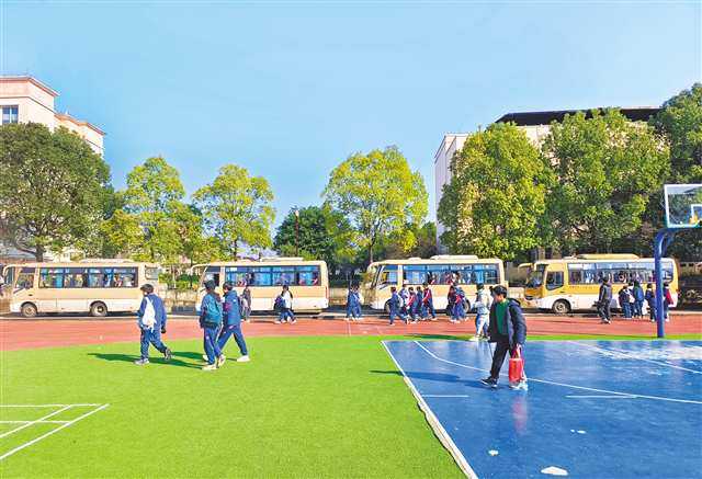 唐于斐家住聚奎镇安寿村。自聚奎镇部分村社划入礼让初中招生范围后,她便和300余名同乡学子一起在这里求学。然而,“放学回家”曾是她每周五的难题:“以前下午放学,收拾书包稍微慢一点,就赶不上到岔路口的首班公交,等下一班要很久,到家常比平时晚一两个小时。”