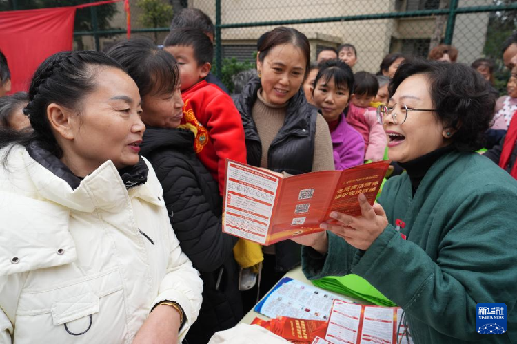 在重庆市北碚区施家梁镇两江科技城小区,工作人员为社区居民宣讲宪法知识。秦廷富 摄/新华社