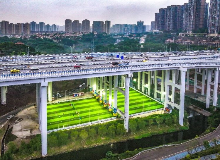 11月3日,九龙坡区五台山足球公园,足球爱好者正在桥下的球场内运动热身。记者 郑宇 摄/视觉重庆